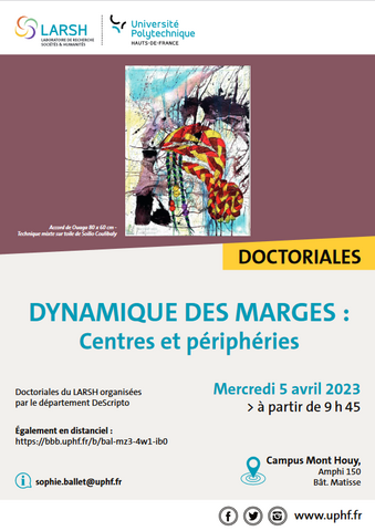 En nous inscrivant dans le prolongement des réflexions menées au sein du LARSH, par exemple, autour de l’Entre-Deux et de l’Outsider (Séminaire Balutet/Nys), ou les contributions aux séminaires doctoraux et au futur Séminaire DeScripto 2023 autour des Inquiétudes, nous souhaitons ouvrir nos réflexions sur les enjeux des marges, des centres et des périphéries à l’ensemble des Doctorants de notre laboratoire.