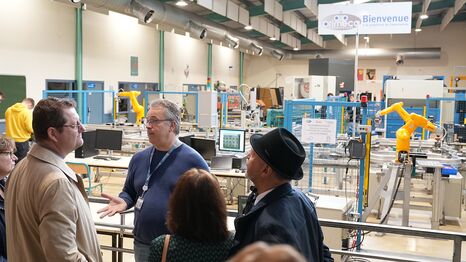 He was received by President Abdelhakim Artiba, who was able to introduce him to the university and its institutional project, as well as the Mont Houy campus: a visit to the technological platforms of the LAMIH UMR CNRS 8201 and the IEMN UMR CNRS 8520, the Valenciennes teaching technology platform Smart, the technical platforms of the IUT, and of VALUTEC, Center for Innovation and Technological Testing, subsidiary of UPHF.