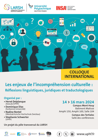 Ce colloque a pour but d'approfondir la réflexion autour des enjeux et des conséquences de l'incompréhension culturelle. L'objectif est d'ouvrir de nouvelles pistes et perspectives de recherche. À partir d'une approche interdisciplinaire, la thématique du colloque fera ainsi l'objet d'interrogations sous un angle linguistique, juridique et traductologique. Située au croisement de trois disciplines qui se recoupent, cette manifestation scientifique cherchera à faire le lien entre théorie et pratique. C'est pourquoi nous accueillerons des interventions portant sur différentes théories et approches disciplinaires ainsi que des témoignages de la vie professionnelle des traducteurs, juristes et linguistes. Dans le cadre de cette manifestation, nous définissons les incompréhensions interculturelles à la fois comme incompréhensions entre des cultures de différents pays, mais aussi comme incompréhensions à l'intérieur d'un même pays en raison de différences culturelles, régionales, sociales ou ethniques.