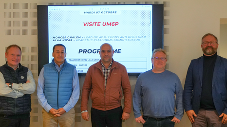Dans le cadre de ses échanges réguliers avec des partenaires internationaux, l’Université Polytechnique Hauts-de-France a eu le plaisir de recevoir une délégation de l’Université Polytechnique Mohammed VI (UM6P), les 7 et 8 octobre représentée par messieurs Moncef Ghalem, Lead of admissions and registrar et Alaa NIZAR, Academic platforms administrator.
