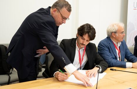 Ce mercredi 16 novembre, les représentants de l'Université Européenne EUNICE se sont réunis à l'Université de Mons pour signer, en présence de notaire, le document de création de l'AISBL EUNICE.