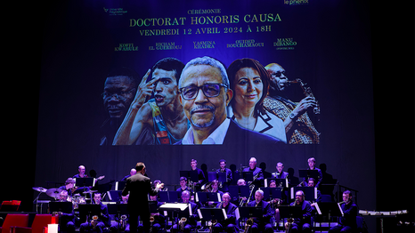 Le titre de Docteur Honoris Causa a été remis à Manu Dibango à titre posthume en présence de ses proches et un hommage chorégraphique et musical lui a été rendu à cette occasion par deux danseurs associés à l'Espace Pasolini.
