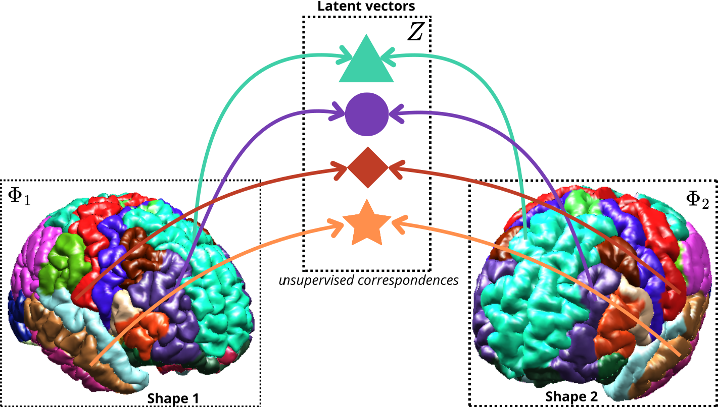 Analyzing brain structures in medical imaging presents significant challenges, mainly due to the heterogeneity of pediatric diseases. Quantitative measurement of brain changes is essential for evaluating clinical outcomes linked to anatomical factors. From an artificial intelligence perspective, establishing correspondences between nonrigid brain structures often relies on similarity-based measures, which are frequently unavailable. In this talk, I will present an unsupervised probabilistic framework for shape matching in brain structures using variational unsupervised learning. This approach effectively captures the underlying representation of surface descriptors associated with brain anatomy. By leveraging a variational Gaussian process latent variable model, we learn group-wise latent space representations of these descriptors, enabling the establishment of unsupervised correspondences. Experimental results demonstrate the model's ability to capture non-linearities in nonrigid brain structures from real-world neurodevelopmental data, highlighting its potential for monitoring anatomical changes in both healthy and abnormal brain shapes.