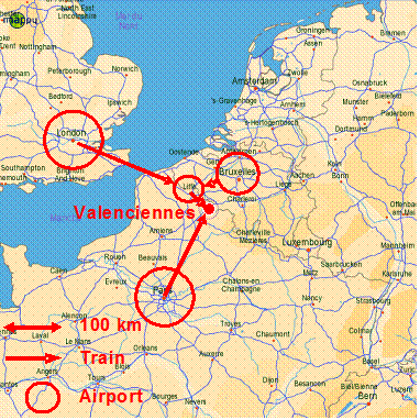 Three International airports (Paris, London and Brussels) are less than 2 hours train from Valenciennes Nevertheless, the Charles De Gaulle airport in Paris is the most convenient one. Indeed, the TGV can be picked up under the airport to go to Valenciennes.
