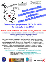 Dates : Les journées Activités physiques Gymniques et Artistiques auront lieu les mardi 23 et mercredi 24 mars 2010