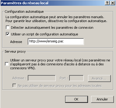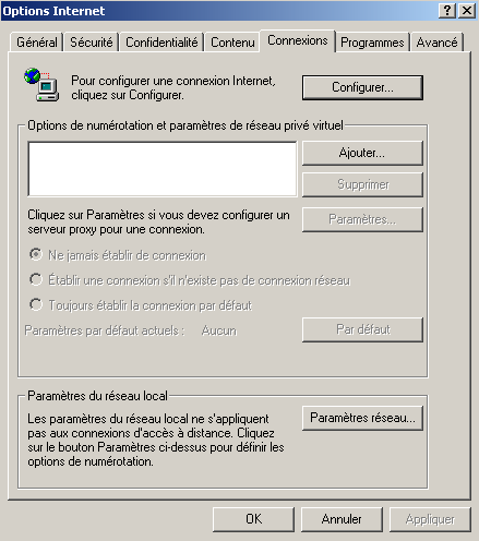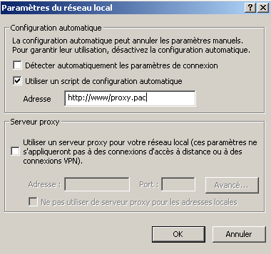 du Proxy dans les "Options Internet" pour une connexion "Réseau"