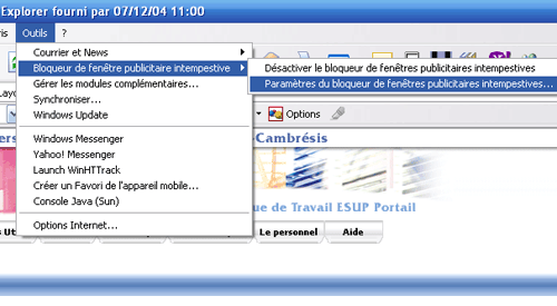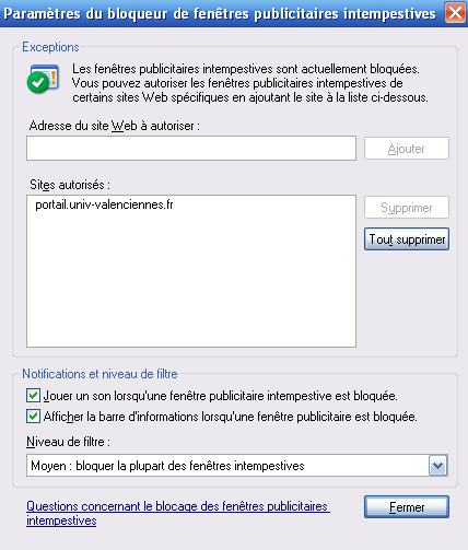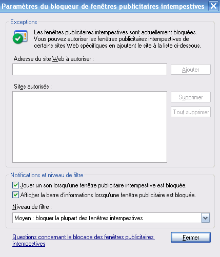 paramètres du bloqueur de fenêtres publicitaires