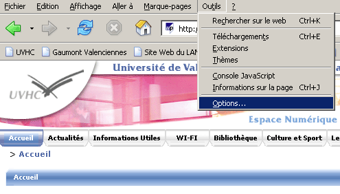 1. Choisir le menu "Outils / Options..." (cf. fig. 1)