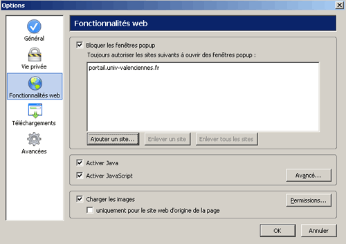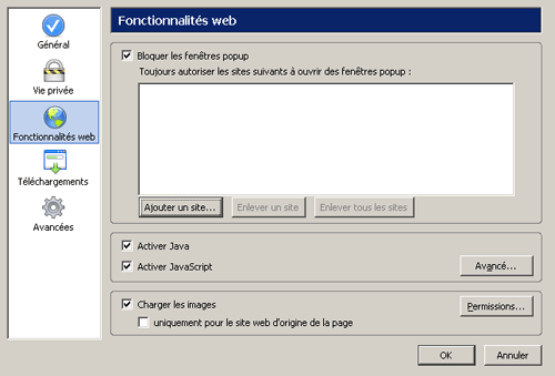 Configuration Pop up sur Mozilla Firefox