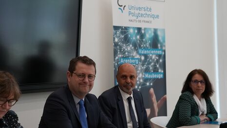 Fue recibido por el Presidente Abdelhakim Artiba, quien pudo presentarle la universidad y su proyecto institucional, así como el campus de Mont Houy: una visita a las plataformas tecnológicas de la LAMIH UMR CNRS 8201 y de la IEMN UMR CNRS 8520, la plataforma tecnológica de enseñanza de Valenciennes Smart, las plataformas técnicas de la IUT, y de VALUTEC, Centre d'innovation et d'essais technologiques, filiale de l'UPHF.