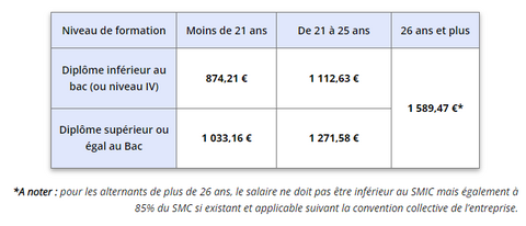 - Titulaire d'un titre ou diplôme professionnel égal ou supérieur au BAC ou diplôme de l’enseignement supérieur : au moins 65% du SMIC