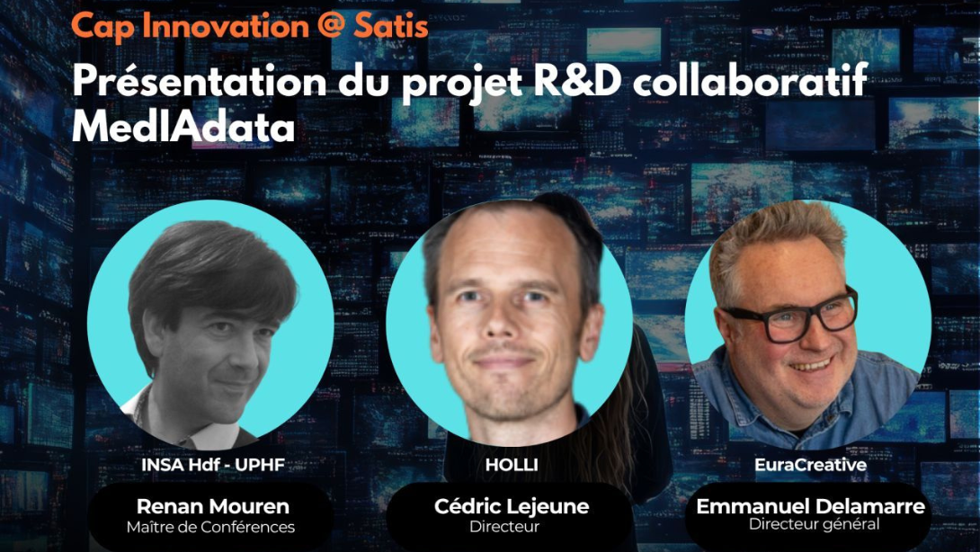 Renan Mouren, Maître de Conférences à l’INSA Hauts-de-France, a récemment présenté le projet MedIAdata sur les plateaux du SATIS, aux côtés de Emmanuel DELAMARRE (Directeur Général, EuraCreative) et Cédric Lejeune (Directeur, HOLLI).