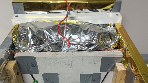 - des mesures thermiques, pour lesquelles ils ont mis au point un dispositif permettant de suivre la réponse thermique de plaques de béton biosourcé et ainsi comparer leurs performances à celles d'un béton classique.