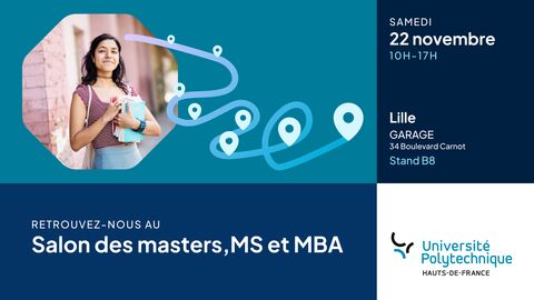 L’Université Polytechnique Hauts-de-France participera à la 27ᵉ édition du Salon de l’Étudiant Masters, MS et MBA, qui se tiendra le samedi 22 novembre 2025, de 10h à 17h, au Garage (34 boulevard Carnot, Lille).