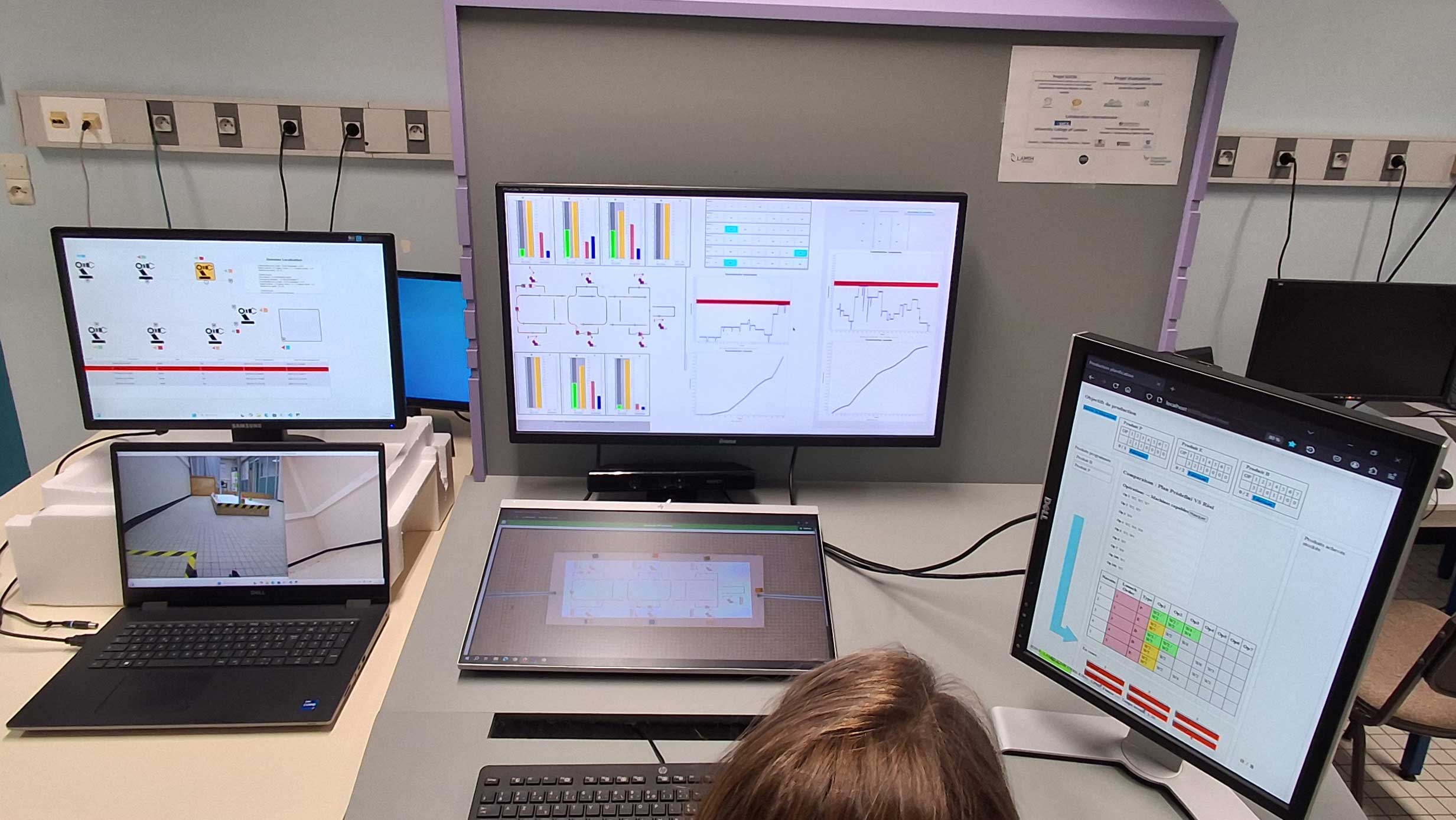 Le troisième Système Humain-Machine consiste en déployer en simulation des éléments d’une cellule flexible de production. Ce système combine des entités auto-organisées réactives à des aides à la planification et suivi de production pour soutenir l’humain dans ses tâches de contrôle et de commande.