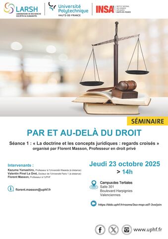 Le but de ce séminaire est d’introduire à l’épistémologie juridique et de discuter ensemble des controverses au sujet du rôle attribué aux concepts juridiques, et ce dans trois pays (Japon, Royaume-Uni, France). Les doctorants auront ainsi un aperçu de ces débats, passés et présents, que nous pourrons confronter avec leurs propres interrogations.